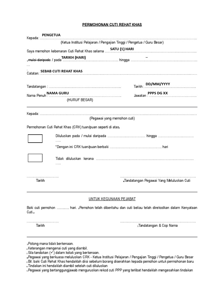 Borang Permohonan Cuti Rehat Khas Pdf
